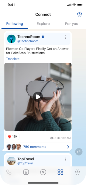 The “Connect” displays your personalized stream of content, showing posts from channels, news updates, and media you care about. You can easily adjust what appears in your feed to match your interests.